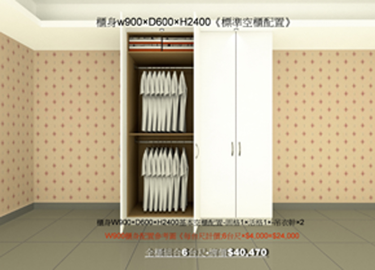 2, 標準空櫃配置需求固格一×活格一×掛衣桿二支×對開門扇